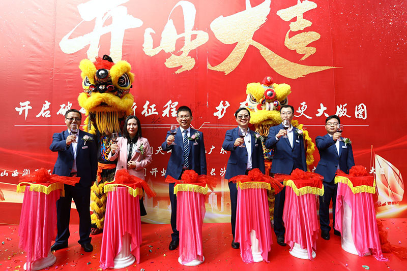 開業典禮上,北京中投潤天環保科技有限公司總經理張德群先生,執行董事董婧祎女士,董事、銷售總監徐劍先生,董事、技術總監李剛先生,廣東潤天環保科技有限公司總經理杜連杰先生,技術總監肖奇先生,及重要合作伙伴代表、員工代表等嘉賓濟濟一堂,現場舉行了隆重的紅毯儀式與嘉賓簽名。吉時剪彩時刻,掌聲歡笑與禮炮聲交織連綿,大家共同舉杯,攜手見證了廣東潤天環保正式啟幕營業。