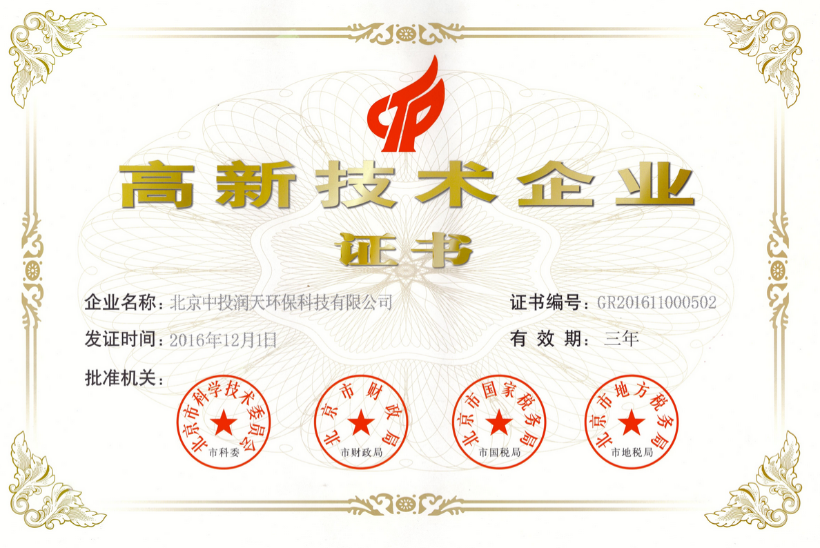 熱烈慶祝潤天環保于2016年12月1日獲得國家高新技術企業稱號!