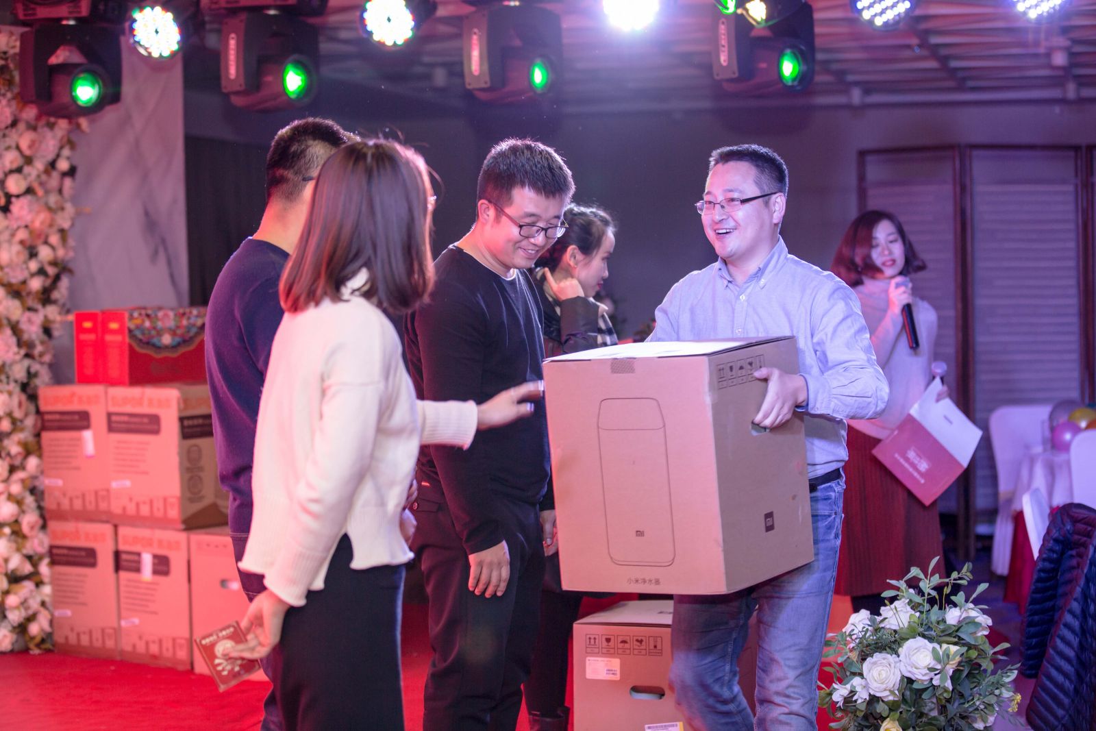 表彰大會上,潤天員工各展絕活,奉獻了精彩紛呈的文藝表演。在派獎環節,公司為辛勤付出的潤天人送上了豐厚獎勵,囊括了75寸曲面電視、iphoneX手機、小米凈水器和平衡車、千元紅包及高檔電壓力鍋等,現場氣氛熱烈,歌聲、笑聲、掌聲連連。