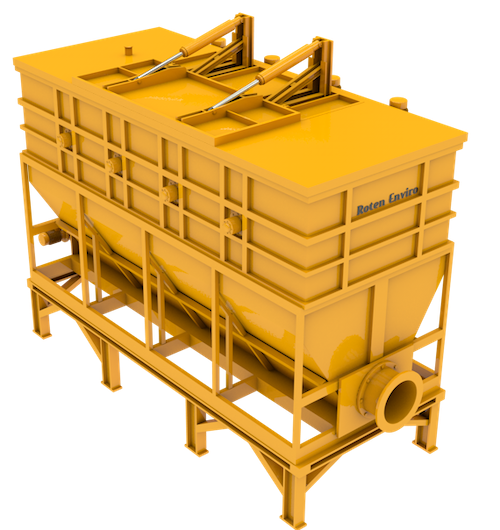 RCH系列斜底均漿倉由自動液壓倉蓋、下沉式隔柵、傾斜倉底、攪拌軸、出料螺旋、料位計等部分組成。配合卸車功能使用的自動液壓倉蓋,卸車時自動開啟,平時為關閉狀態,密閉性好可防止物料中臭氣外溢污染環境。分區攪拌的形式可防止物料因儲存造成的板結、離析、沉淀。出料螺旋可直接與RPA單柱塞固體泵及雙柱塞固體泵相連,在滿足基本使用功能的前提下降低總投資。