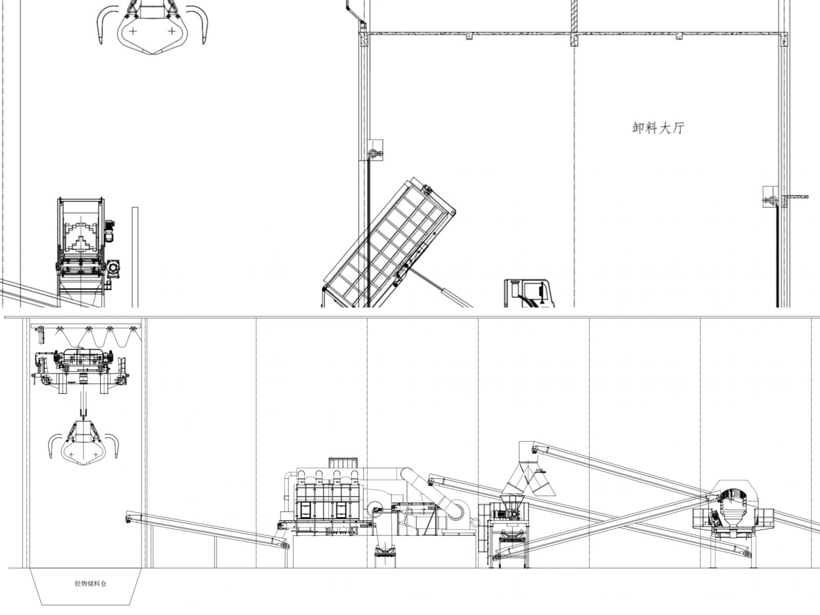 本工藝通過發酵、破碎、風選、篩分、擠壓等工序將一般生活垃圾加工成RDF,作為替代燃料供應水泥、鋼鐵、發電等高耗能工業。在垃圾能源化的同時促進煤炭替代,節能減排,助力雙碳目標,實現工業綠色發展。本工藝滿足 22t/h 的生產能力。
