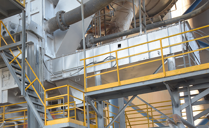 替代燃料、RDF、固態廢棄物從預燃爐尾部通過螺旋、溜槽、兩道翻版閥進入爐內。