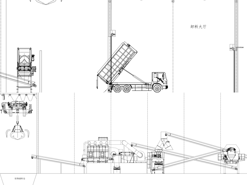 本工藝通過發酵、破碎、風選、篩分、擠壓等工序將一般生活垃圾加工成RDF,作為替代燃料供應水泥、鋼鐵、發電等高耗能工業。在垃圾能源化的同時促進煤炭替代,節能減排,助力雙碳目標,實現工業綠色發展。本工藝滿足 22t/h 的生產能力。一級粗破碎機:適用于復雜工況下的粗破碎機,獨特的刀型設計與排列組合,獨立軸的變速變相運行程序,刀具獨特的鍛造工藝與熱處理工藝以及與物料接觸區域增加耐磨層,解決了目前市場同類產品遇到的各種痛點問題,諸如機器卡死、出料尺寸大、纏繞堵料、產能低、刀具磨損快等,有效降低客戶停機成本、運行維護成本。雙軸剪切破碎機:采用電機+行星減速機驅動模式,轉速低,扭矩大,可用于強度高,物料 復雜的破碎工作,尤其對于皮革紡織柔性物料具有很好適用性;簡單的動力 傳動模式,極大降低了設備故障,確保破碎機的可靠持久運行,具體表現為 產量的穩定和出料尺寸波動范圍小。磁選機:分選出不具有熱值但具有高回收價值的鐵金屬物質,同時避免鐵影響后 段工序質量,如細破碎、成型,甚至影響成品燃料的品質。風選:輕重物質分選效果好,能分選出非可燃性物質,如石頭、石塊及金屬等。擠壓機:將通過液壓提供的高壓力及擠壓腔將風后的可燃物;進行擠壓,進一步降低可燃物含水率。